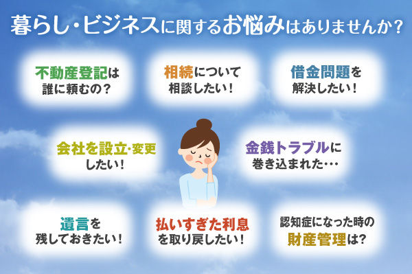 務は、多様です。皆さんが困った時に、司法書士が手助けできることは、意外にも多
