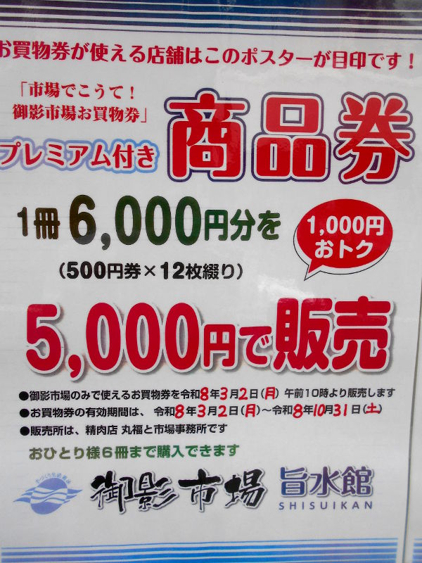 御影市場のみで使えるお買物券、「市場でこうて!御影市場お買物券」を